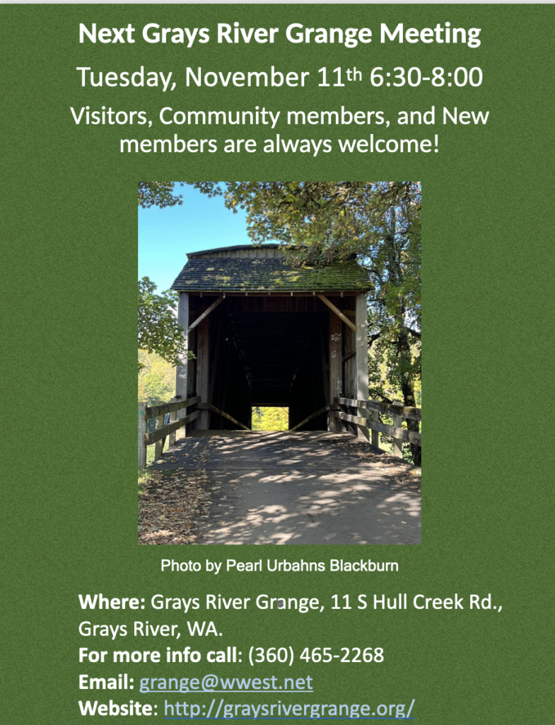 We would love to see you there, and we welcome all who would like to share in the Grays River Grange meeting experience.